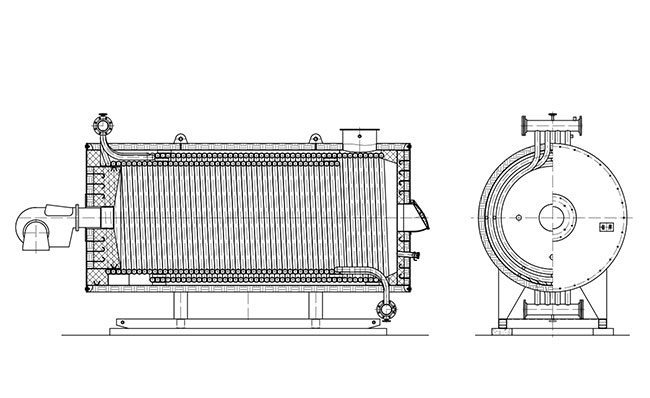 YY(Q)W系列燃油(氣)導(dǎo)熱有爐以油(氣)為燃料,以導(dǎo)熱油為介質(zhì),利用熱油輪回油泵強(qiáng)制介質(zhì)進(jìn)行液相輪回,將熱能輸送給用熱設(shè)備后再返回導(dǎo)熱油爐重新加熱,從而實(shí)現(xiàn)了在低壓力下獲得高工作溫度介質(zhì)的功能,并且能對(duì)介質(zhì)運(yùn)行進(jìn)行高精密控制。又因?yàn)殄仩t模塊可以整體安裝,運(yùn)行維修便利,是一種安全、有效、節(jié)能的理想的供熱設(shè)備。燃燒油(氣)有燃燒器點(diǎn)火后產(chǎn)生的高溫火焰進(jìn)入內(nèi)盤管內(nèi)形成輻射受熱面,進(jìn)過內(nèi)盤爐管后部向前旋轉(zhuǎn)180℃進(jìn)入內(nèi)管、中管和外管的夾層區(qū)形成對(duì)流受熱面。然后在夾層的上部進(jìn)入中管和外管的第二夾層區(qū),之后在第二夾層區(qū)的后部經(jīng)煙囪排入大氣。